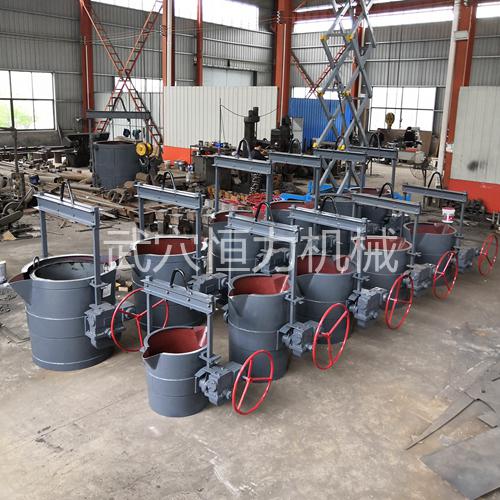 鐵水包:用于承裝鐵水后,行車懸吊澆注用。減速機(jī)采用蝸輪蝸桿傳動(dòng),轉(zhuǎn)動(dòng)靈活自如,雙向回轉(zhuǎn),可逆性好。分手動(dòng)和手電兩用,手動(dòng)操作方便,電動(dòng)為電機(jī)傳動(dòng)安全省力。吊桿采用鍛件,比鋼板焊接安全可靠;包體鋼板較厚,包底采用錐度、底箍、焊筋相結(jié)合,既延長了使用壽命,又確保了安全;包體與吊桿和減速箱均裝有鉸鏈卡板,可隨時(shí)鎖定;兩包軸與吊桿間裝有調(diào)心軸承,一致性好。