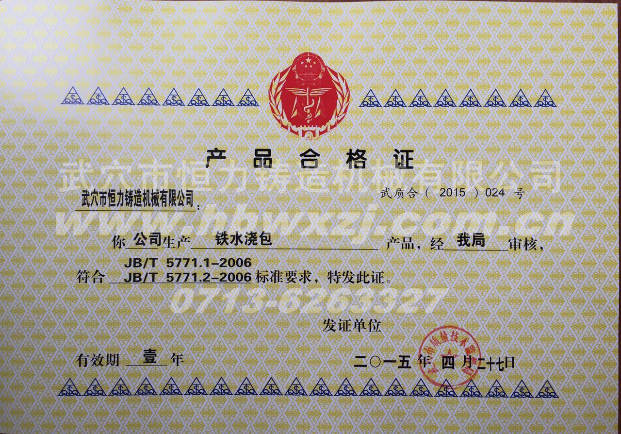 鐵水包合格證