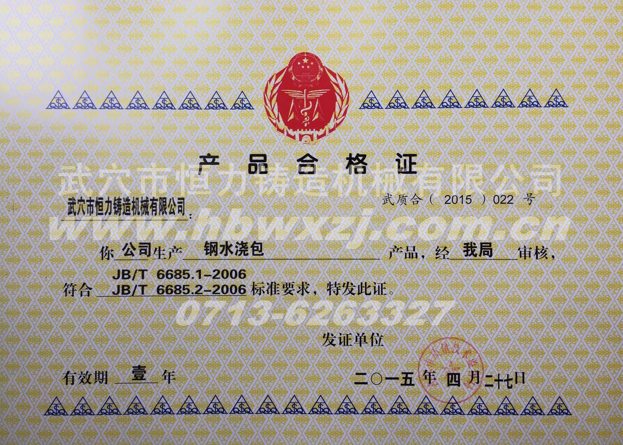 鋼水包合格證